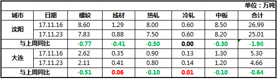 表2:遼寧市場(chǎng)主要品種庫(kù)存匯總(2017-11-23)