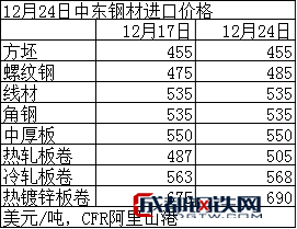 12月24日中東進口鋼材價格