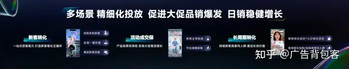 除了種草場(chǎng)景,巨量千川還將做大多場(chǎng)景、精細(xì)化投放,促進(jìn)大促品銷(xiāo)爆發(fā)、日銷(xiāo)穩(wěn)健增長(zhǎng),產(chǎn)品能力包括新客轉(zhuǎn)化、活動(dòng)成交保、長(zhǎng)周期轉(zhuǎn)化等。