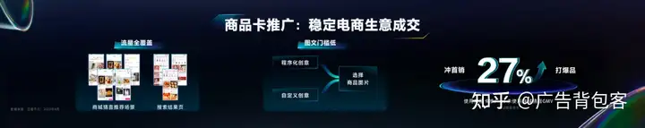 未來(lái)抖音電商生意增長(zhǎng)核心在于加碼貨架場(chǎng),形成內(nèi)容場(chǎng)與貨架場(chǎng)的充分聯(lián)動(dòng),全域做生意。巨量千川也將在貨架場(chǎng)全面布局,通過(guò)全場(chǎng)域營(yíng)銷(xiāo)能力的完善,提高生意經(jīng)營(yíng)的確定性。想做好貨架生意,商品卡是重中之重。巨量千川推出“千川商品卡推廣”,商家可以借力廣告,搶占流量先機(jī)。使用巨量千川商品卡推廣的商品對(duì)比未使用的商品,商城猜你喜歡的GMV可提升27%左右,可以更好地幫助品牌沖首銷(xiāo)、打爆品。