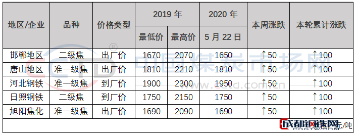 焦炭價格兩輪提漲100元已落地,依舊處于相對穩(wěn)定偏強(qiáng)狀態(tài)。從下表企業(yè)或地區(qū)焦炭市場走向可以看到,焦炭價格的上漲也是全面開花。