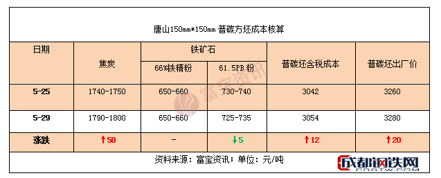 ◆本周唐山鋼坯成本分析:上升