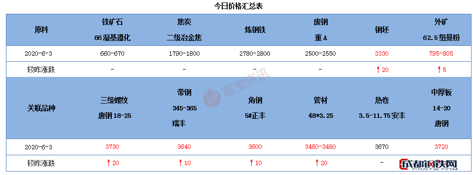 【唐山鋼市綜述】3日期螺持紅運(yùn)行,現(xiàn)貨市場(chǎng)受此提振,低價(jià)資源成交向好,昨午后市價(jià)接連上漲,商家炒漲心態(tài)積聚,今鋼坯漲20,成品續(xù)揚(yáng)。然隨著市價(jià)的不斷飆升,下游畏高情緒滋生,加之近期雨水增多,終端用鋼需求難有明顯放量,料近堅(jiān)挺,漲勢(shì)乏力。| 品種 | 今日行情 | 短期預(yù)測(cè) |