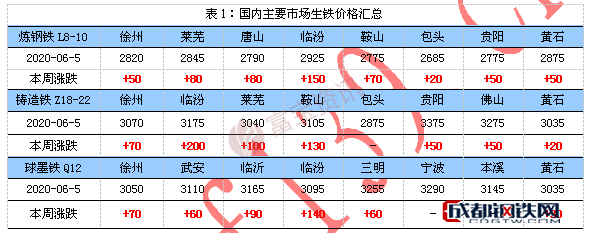 生鐵周報(bào):成本支撐強(qiáng)勁 生鐵再度大漲(6.1-6.5)