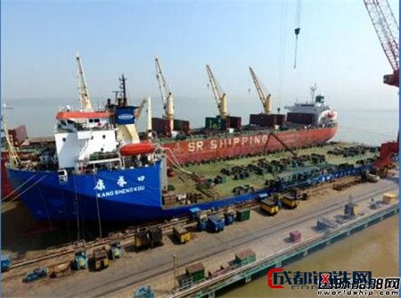 圖為TCO項(xiàng)目海運(yùn)段首發(fā)執(zhí)行船“康盛口”輪在舟山中遠(yuǎn)海運(yùn)重工進(jìn)行支墩安裝工程。