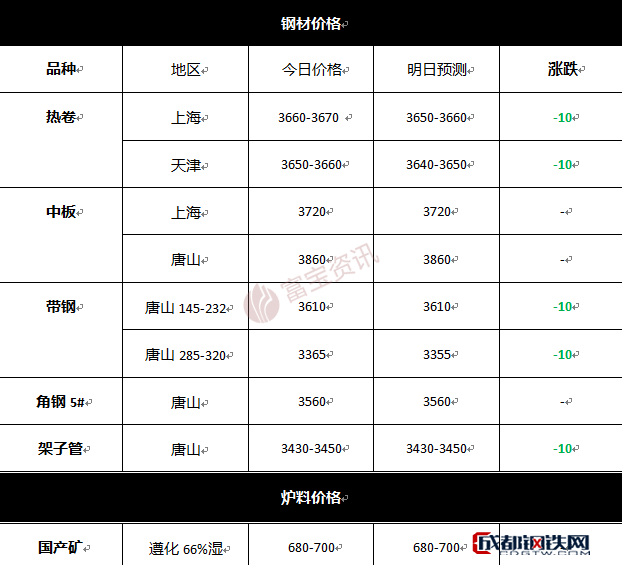 現(xiàn)貨市場(chǎng)行情(表格來(lái)自成都鋼鐵網(wǎng)軟件APP哦)