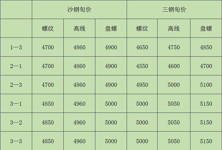 最新一期鋼廠旬價(jià)政策: