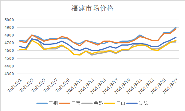 三鋼:2021年03月26日零時(shí)起建材所有品種價(jià)格不調(diào)整,03月26日零時(shí)起指導(dǎo)價(jià)執(zhí)行螺紋鋼5000/高線5050/盤(pán)螺5150,貼息率不調(diào)整