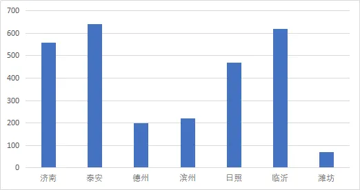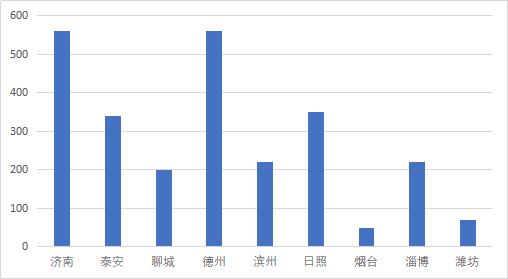 濰坊等9個(gè)主要城市,占比最大的為濟(jì)南和德州兩個(gè)城市,占總量的43.56%,相對(duì)分散。魯西南產(chǎn)能占比80%以上,膠東半島例如