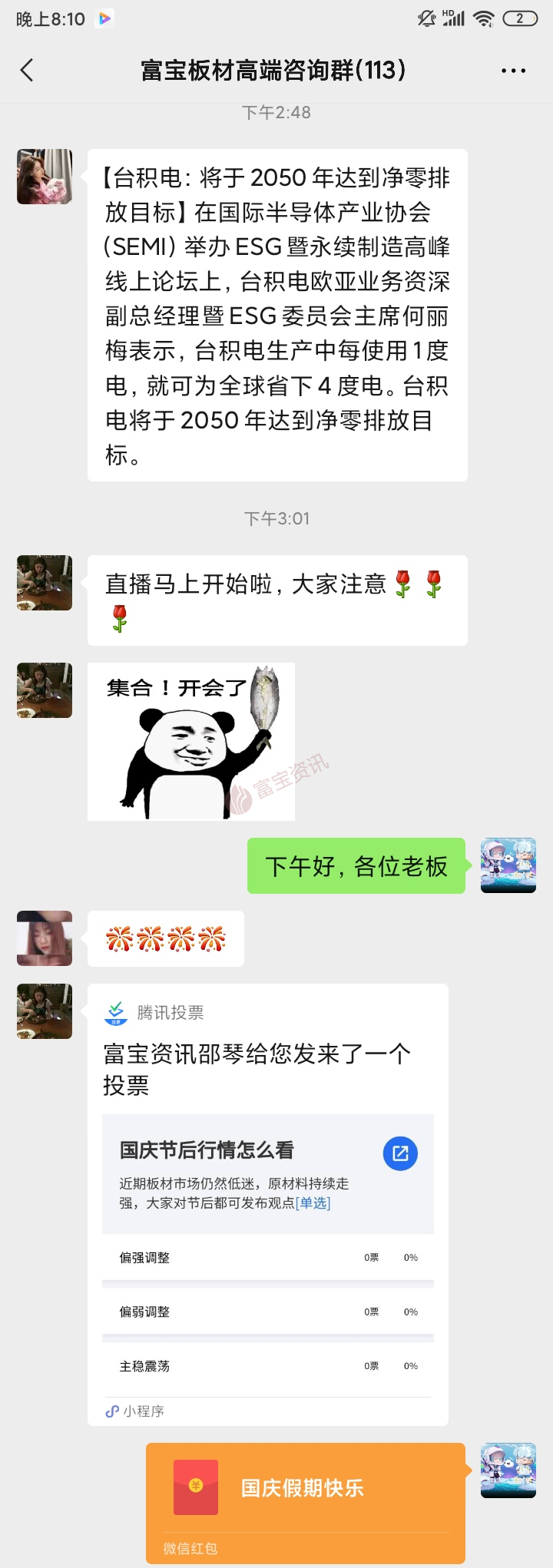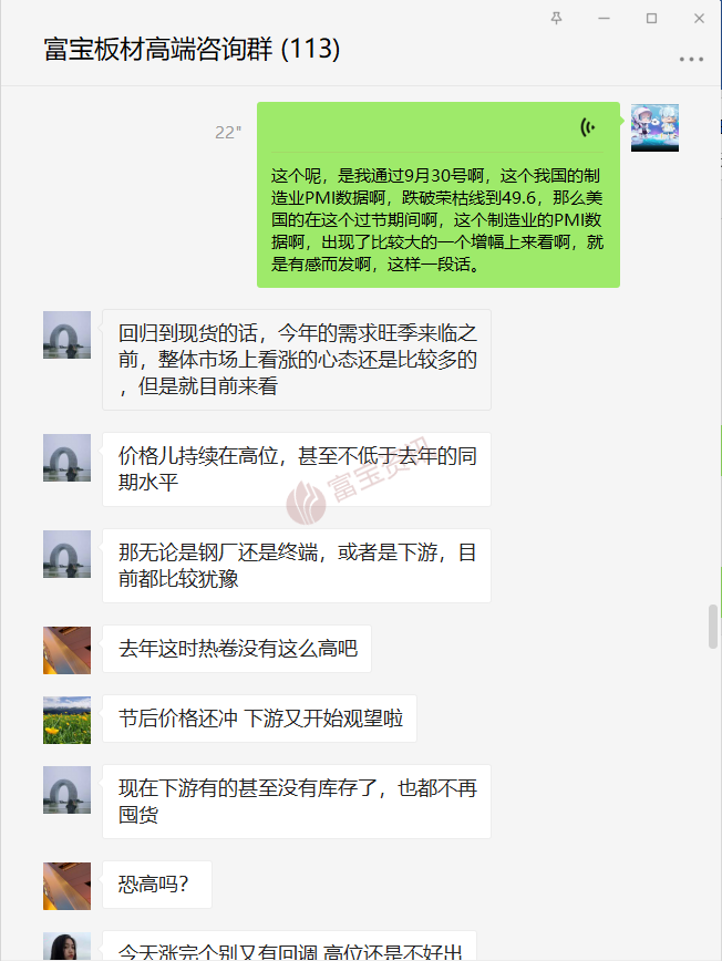 國慶假期接近尾聲,成都鋼鐵網(wǎng)VIP兩個高端群針對國慶市場走勢展開熱烈討論,成都鋼鐵網(wǎng)研究分析師就國慶宏觀新聞進行講解,全國各地代理商,貿(mào)易商,終端客戶,客戶展開激烈討論,下面來看看討論狀況吧!進群請聯(lián)系各自業(yè)務(wù)員。
