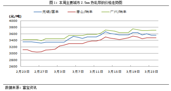 華北主導鋼廠較上周降百元左右,華東華南地區(qū)降幅緊跟華北,主流降80-100。三月傳統(tǒng)旺季行情下,終端需求持續(xù)低迷,加上周初期貨大幅下挫,打壓市場信心,現(xiàn)貨受此拖累開始一蹶不振。21日霸州環(huán)保限產(chǎn)三日消息發(fā)布,但對熱帶影響甚微,單純靠限產(chǎn)提振未果。南方地區(qū)受陰雨天氣影響,成交寥寥,且?guī)齑鎵毫ζ?,讓利走貨為主。且南方市場多跟華北變動,本身調(diào)整缺乏自主性。周四在坯料以及成品累跌幅度較大后,市場低位資源出現(xiàn)好轉,但上揚行情僅僅是曇花一現(xiàn)。周五鋼廠雖謹慎維穩(wěn),但下游并不買賬,