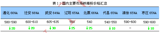 ◇趨勢預判 :受普指持續(xù)低位影響,本周鐵礦石價格大幅下滑。短期內(nèi)礦石市場頹勢難改,料下周礦將震蕩下行。 進口礦:本周普指維持80美金低位震蕩,港口期現(xiàn)資源價格同步走低,節(jié)前鋼廠補庫較多,礦商多讓利促成交。料下周外礦或?qū)⒕S持弱勢。 國產(chǎn)礦:本周連鐵寬幅震蕩,成材價格較前期有所回落,鋼廠壓價嚴厲,商家心態(tài)悲觀,市價低靠。近期成材行情反復,國產(chǎn)礦或?qū)⑷醴€(wěn)運行。 一、市場行情回顧 1.國產(chǎn)礦方面 本周國產(chǎn)礦市場趨弱運行。周初鋼市大跌,再加上普指逼近80美金,使內(nèi)粉商家心態(tài)處悲觀,雖然后期成品有小幅反彈,但瞬間即逝依然沒能穩(wěn)住,下行通道,唐山主流鋼企壓價采購顯積極,導致部分商家心態(tài)不穩(wěn),有低出現(xiàn)象,但大部分商家并不急于出貨,整在尋找合適的契機,暫時對市場以觀望為主。預計下周國產(chǎn)礦市場維持弱穩(wěn)。
