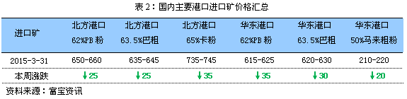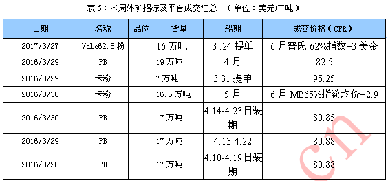 3.期礦市場動態(tài) 本周礦山成交繼續(xù)低迷,因成材社會庫存升高,市場對二季度價格風險擔憂導致遠期資源采購力度下降,鋼廠補庫多以港口現(xiàn)貨為主。