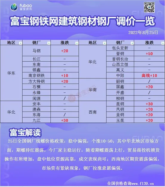 韶鋼三級大螺4200元/噸,較前一日漲30;【預(yù)測】25日全國線螺價格穩(wěn)中偏強運行,其中波動幅度在10-30,據(jù)成都鋼鐵網(wǎng)統(tǒng)計52個樣本城市中,28個城市平穩(wěn)運行,占比54%,4個下跌城市,占比8%,上漲城市20,占比38%,昨期貨先強后弱,午后期貨大幅跳水后震蕩偏弱運行,現(xiàn)貨市場午后部分市場跟跌,整體觀望者較多,成交來看午后的跳水多少對采購方產(chǎn)生了一點影響,又臨近周末市場心態(tài)變得謹(jǐn)慎,鋼廠面,由于近期的薄弱需求使得廠庫有一定的增加,但好在產(chǎn)量并未大幅增加,綜合考慮,今日市場降穩(wěn)中調(diào)整為主。成都鋼鐵網(wǎng)分析主要影響因素如下:1、鋼廠復(fù)產(chǎn)的進(jìn)度未有明顯加快;2、期貨午后跳水;3、成本端尚有支撐。料今北京市場河鋼三級抗震大螺價4070元/噸,較前一日穩(wěn),上海市場中天三級大螺4050元/噸,較前一日穩(wěn);廣州市場韶鋼三級大螺4200元/噸,較前一日穩(wěn)?!窘固俊?5日