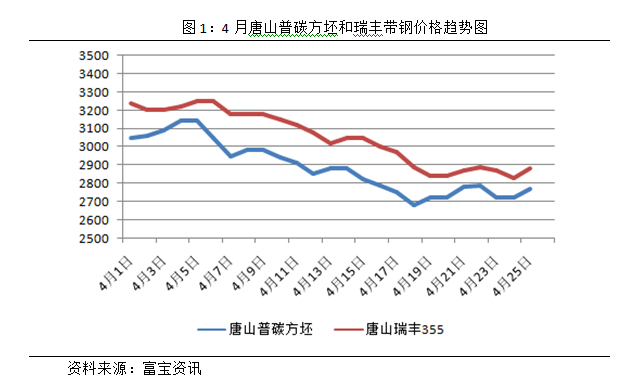 方坯四天內累跌200元/噸,如圖1所示截止發(fā)稿,本月唐山普碳