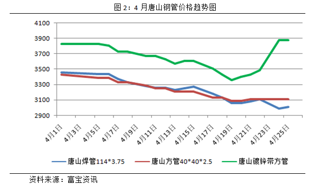 調價方面:如圖2所示,本月唐山主流管廠鋼管價格大幅下滑,4寸3.75