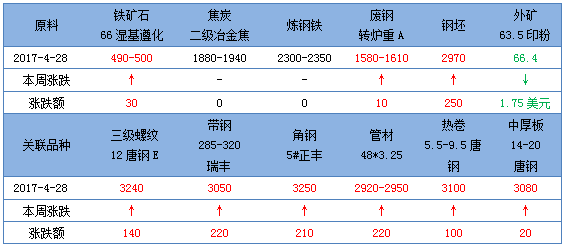 | 4月28日 | 億豐 | 扁鋼10mm上調(diào)50現(xiàn)報3170元/噸,含稅價格。 |