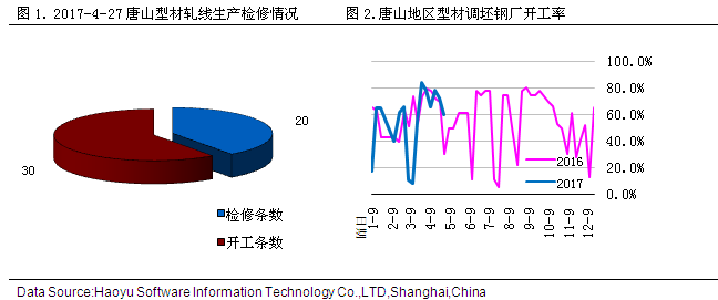 唐山型材鋼廠開(kāi)工率下跌。據(jù)成都鋼鐵網(wǎng)4月27日統(tǒng)計(jì),34家型廠50條生產(chǎn)線開(kāi)工30條,較上周減少6條,開(kāi)工率為60.00%,較上周下降了12.00%。 三、市場(chǎng)庫(kù)存概覽