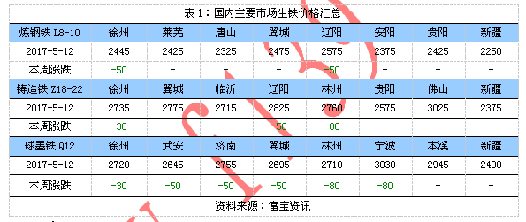 生鐵周報:出貨不暢 鐵價再度下調(diào)(5.8-5.12)