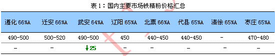 天津港58%楊迪365-375元/噸、澳洲PB粉475-485元/噸、63%巴粗460-470元/噸,