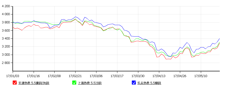 成都鋼鐵網(wǎng)資訊5月23日消息: 進入5月以來,鋼價走勢還是較為震蕩的,但是大體趨勢是趨強的,以熱軋為例,上海地區(qū)5.5沙鋼熱卷價格較月初上漲115元/噸,天津地區(qū)5.5唐鋼熱卷價格較月初上調115元/噸,而樂從地區(qū)5.5柳鋼熱卷價格則較月初上漲95元/噸。半個月以來市場呈現(xiàn)先跌后漲的走勢。