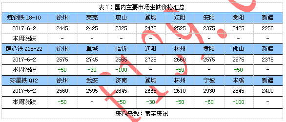 生鐵周報:出貨不暢 鐵價繼續(xù)走低(5.31-6.2)
