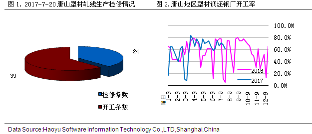 唐山型材鋼廠開工率小幅下降。據(jù)成都鋼鐵網(wǎng)7月20日統(tǒng)計(jì),44家型廠63條生產(chǎn)線開工39條,較上周減少4條,開工率為61.9%,較上周下降了6.35%。 三、市場(chǎng)庫存概覽