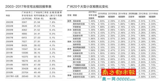 南都記者抽查了淘金家園、美林海岸花園、華景新城、駿云景花園等20個(gè)大型小區(qū),發(fā)現(xiàn)在今年上半年,這20個(gè)大型小區(qū)只有3個(gè)小區(qū)的出租回報(bào)率高于2%,且都集中在番禺和黃埔,分別是麗江花園、祈福新邨及黃埔區(qū)石化大院。