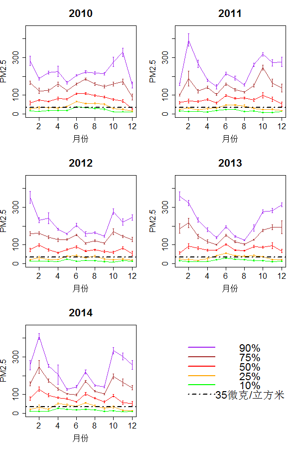 過去五年P(guān)M2.5分布的分位數(shù)