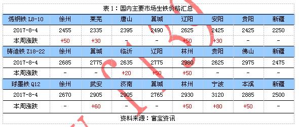 生鐵周報:成本支撐強勁 鐵價繼續(xù)走高(7.31-8.4)