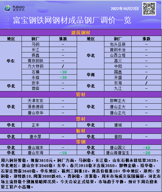 閩源3880跌40.,晉鋼穩(wěn),濟(jì)源穩(wěn),周末市場(chǎng)成交氛圍偏弱,河北市場(chǎng)主流持穩(wěn)個(gè)別規(guī)格暗降出貨,本周末會(huì)議正式結(jié)束,市場(chǎng)趨于平靜,預(yù)計(jì)短期市場(chǎng)會(huì)迎來(lái)復(fù)工復(fù)產(chǎn)小高潮,價(jià)格穩(wěn)中上調(diào)。 【型材】22日唐山型材主穩(wěn)運(yùn)行。角5-6.3#3970;槽8-16#3980;工14-20#4010。需求釋放不佳,下游詢盤(pán)問(wèn)價(jià)較少,中間商多按需采購(gòu)為主。然廠商整體庫(kù)存壓力不大,市場(chǎng)仍有一定挺價(jià)心理。預(yù)計(jì)周末型價(jià)將維穩(wěn)運(yùn)行。