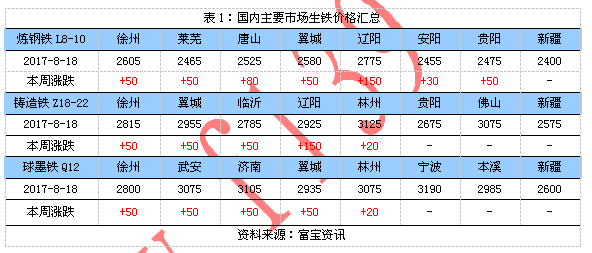 生鐵周報:成本支撐強勁 鐵市再度上行(8.14-8.18)