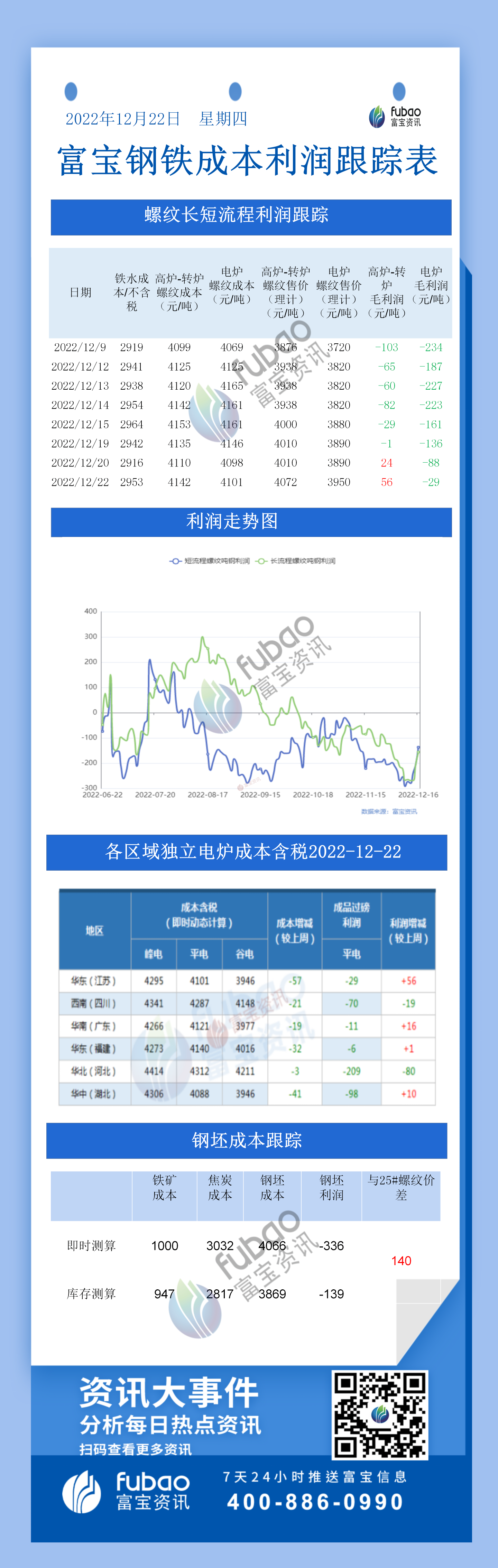 12月22日鋼鐵成本利潤跟蹤表