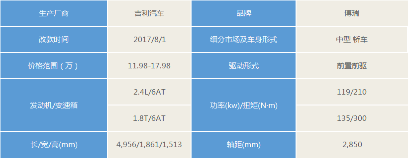 新款博瑞為中期改款車型,新車主要針對(duì)外觀及內(nèi)飾方面進(jìn)行了調(diào)整,并且經(jīng)過(guò)了一些輕量化的設(shè)計(jì),整車減重75kg。新車換裝了全新設(shè)計(jì)的保險(xiǎn)杠,整體造型更具張力;下格柵造型由原來(lái)的飄帶式調(diào)整為刀鋒式雙側(cè)下格柵,同時(shí)加入橫向貫穿式鍍鉻飾條,運(yùn)動(dòng)氣息十足。車尾保險(xiǎn)杠增加了貫穿式鍍鉻飾條以及兩側(cè)類似通風(fēng)孔的設(shè)計(jì),搭配雙邊共兩出的排氣布局,配合18寸密輻輪轂,極大提升了運(yùn)動(dòng)感。內(nèi)飾方面,新款博瑞在方向盤造型上更加動(dòng)感。動(dòng)力方面,新車搭載2.4L和1.8T兩款發(fā)動(dòng)機(jī),其中1.8T發(fā)動(dòng)機(jī)經(jīng)過(guò)重新調(diào)校,相比現(xiàn)款車型增加了21馬力,與兩款發(fā)動(dòng)機(jī)匹配的是一款全新6速手自一體變速箱??恐峡畈┤鸫蛟斓牧己玫目诒蛷V泛的認(rèn)知度,吉利對(duì)博瑞進(jìn)行了一番全新的年輕化改造,使之更貼合該價(jià)位消費(fèi)者的用車習(xí)慣和潛在需求。