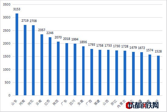 1-8月山東、河南、河北、云南、江蘇排在省份銷量前五位,山東省銷量達到3153臺。海南、青海、黑龍江、上海、天津銷量較少,排在后幾位。