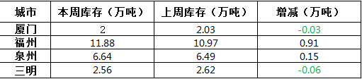 表1.福建部分城市本周螺紋庫存統(tǒng)計(jì)