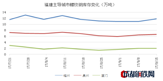據(jù)統(tǒng)計(jì)數(shù)據(jù)顯示,截至9月15日,福建整體螺紋鋼庫存總量約24.08萬噸,較上周五統(tǒng)計(jì)增加約1.13萬噸;其中,部分主導(dǎo)城市: