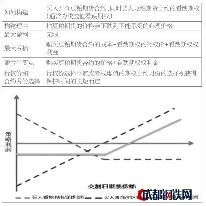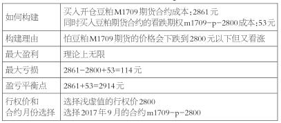 1。構(gòu)建該策略時可以錯時開倉,比如先買入豆粕期貨合約,等上漲后再買入開倉看跌期權(quán),這樣可以先鎖住部分利潤。