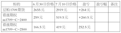 當(dāng)豆粕期貨價格大幅下跌時(比如跌到2629元),投資者認(rèn)為跌到支撐價時,買入平倉看跌期權(quán)m1709-P-2800 ,繼續(xù)持有豆粕1709期貨合約博一下反彈;當(dāng)豆粕期貨價格大幅上漲時(比如漲到3000元),投資者認(rèn)為漲到壓力價時,擇機賣出平倉豆粕1709期貨合約 ,繼續(xù)持有1709-P-2800.