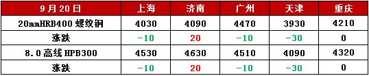 鋼聯(lián)資訊9月20日訊,截至發(fā)稿,全國25個主要城市螺紋鋼價格偏弱震蕩。其中,上海、廣州、北京、成都等12個城市螺紋鋼價格下跌10-50元/噸。
