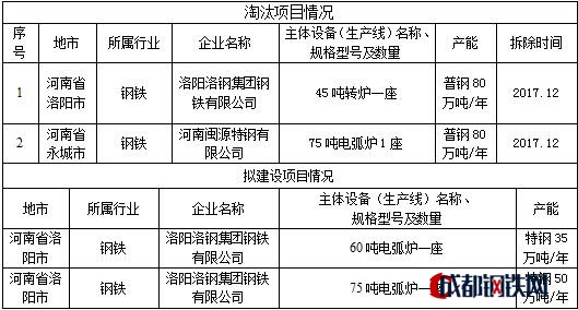 河南省工信委產(chǎn)業(yè)政策處發(fā)布了按照《國(guó)務(wù)院關(guān)于化解產(chǎn)能嚴(yán)重過剩矛盾的指導(dǎo)意見》(國(guó)發(fā)〔2013〕41號(hào))和《河南省工業(yè)和信息化委員會(huì)關(guān)于印發(fā)河南省部分產(chǎn)能嚴(yán)重過剩行業(yè)產(chǎn)能置換實(shí)施辦法的通知》(豫工信產(chǎn)業(yè)〔2015〕150號(hào))要求,將洛陽(yáng)洛鋼集團(tuán)鋼鐵有限責(zé)任公司進(jìn)行產(chǎn)能置換方案的公告。具體方案如下:
