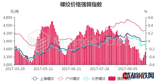 9月29日,螺紋鋼上海市場價格為3870元/噸,廣州市場價格為4300元/噸,北京市場價格為3750元/噸。今日市場成交一般,期貨價格小幅反彈,因此短期內(nèi)價格或?qū)⒈P整趨穩(wěn)。據(jù)我網(wǎng)監(jiān)測,本周,全國主要城市鋼材庫存量957.5萬噸,周環(huán)比下降4.9%,節(jié)前下游集中備貨,市場庫存明顯下降,一定程度上緩解節(jié)后去庫存壓力。10月進入政策市,各地“限產(chǎn)令”、“停工令”密集啟動,節(jié)后建材市場或呈現(xiàn)區(qū)間震蕩,底部有支撐,上漲有阻力。