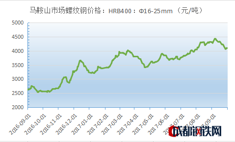 圖1:2016年9月至2017年9月馬鞍山市場螺紋鋼價格走勢回顧