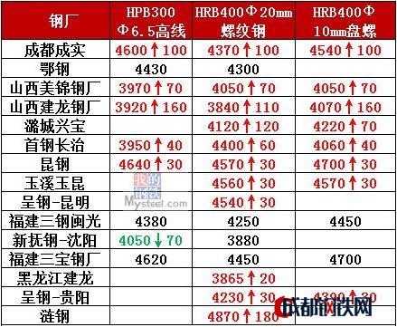 9日,國內(nèi)10家建筑鋼材生產(chǎn)企業(yè)上調(diào)出廠價20-160元/噸,主要受鋼材市場大漲刺激。因鋼廠庫存水平偏低,鋼廠出廠價漲的快、跌的慢。