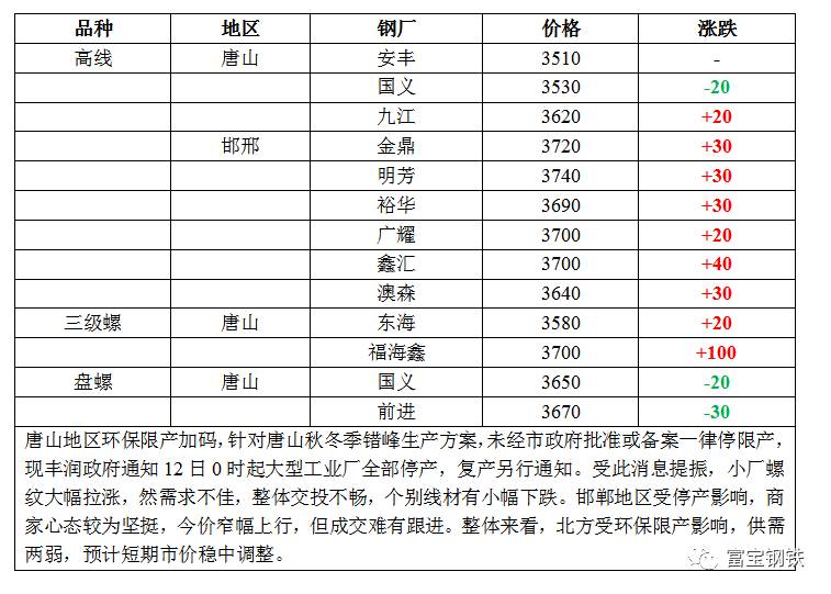 【唐山專版】限產(chǎn)&停工首日行情
