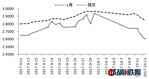 10月13日,隔夜、1周、2周、1個月、6個月 Shibor分別下跌5.20、3.44、0.66、0.22、0.09個基點,報收2.6050%、2.8516%、3.7923%、4.0490%、4.3868%。3個月、9個月、1年Shibor 利率分別上漲0.18、0.07、0.07個基點,報收4.3599%、4.3980%、4.4017%。