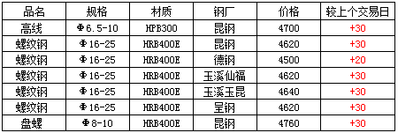2.今日國內(nèi)一線城市建筑鋼材價格漲,周邊成都、重慶、貴陽等地建筑鋼材價格上漲。