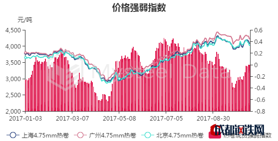 武漢等城市價(jià)格隨著期貨下跌市場(chǎng)有所暗降,與本地?zé)彳垉r(jià)格價(jià)差140元/噸左右;預(yù)計(jì)下周熱軋板卷價(jià)格盤(pán)整偏強(qiáng)。