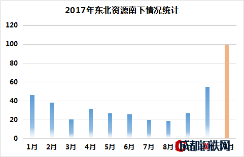 據(jù)統(tǒng)計(jì),2017年?yáng)|北地區(qū)10月實(shí)際南下總量約為55萬(wàn)噸,11月計(jì)劃總量約為99.5萬(wàn)噸,環(huán)比增加80.9%,南下總量約占東北11月計(jì)劃產(chǎn)量的47.4%。二、南下季東北資源總量增加