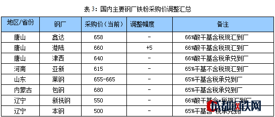 天津港58%楊迪385-395元/噸、澳洲PB粉475-485元/噸、63%巴粗450-460元/噸,